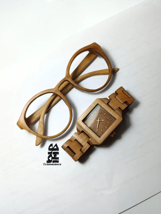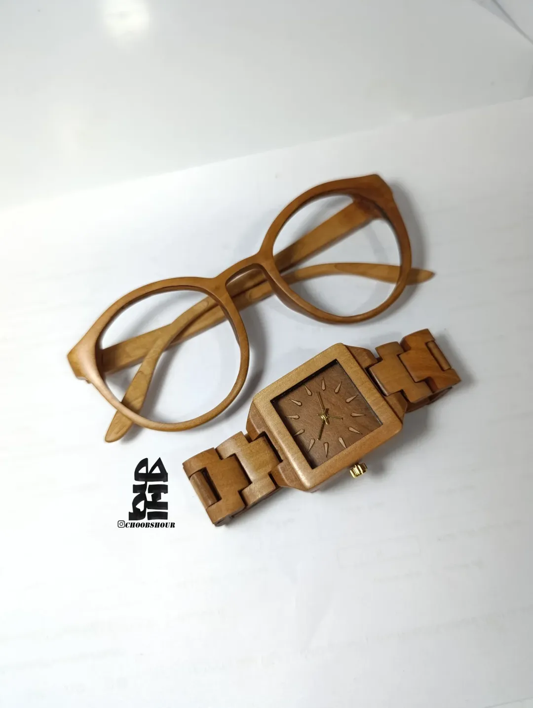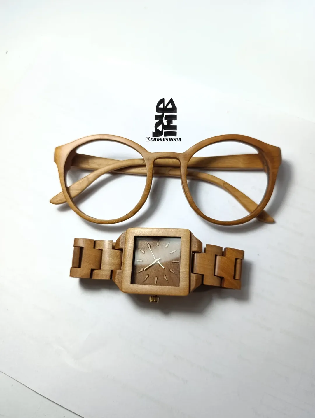 ساعت چوبی ساخته شد از چوب ها جنگلی طبیعی مناسب برای نصب عدسی طبی و افتابی ساده و ساعت مچی مربع مناسب اقایان و خانم ها در سایز بندی مختلف