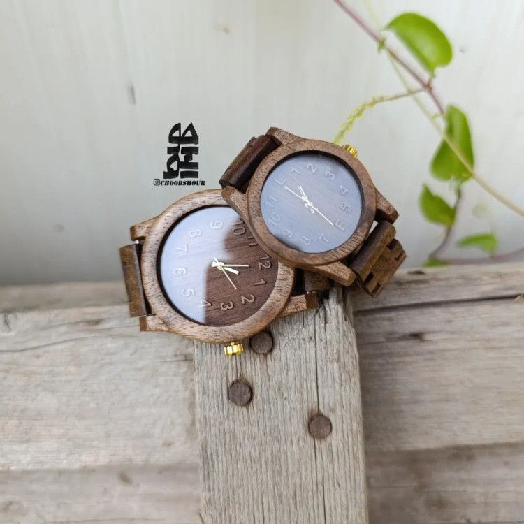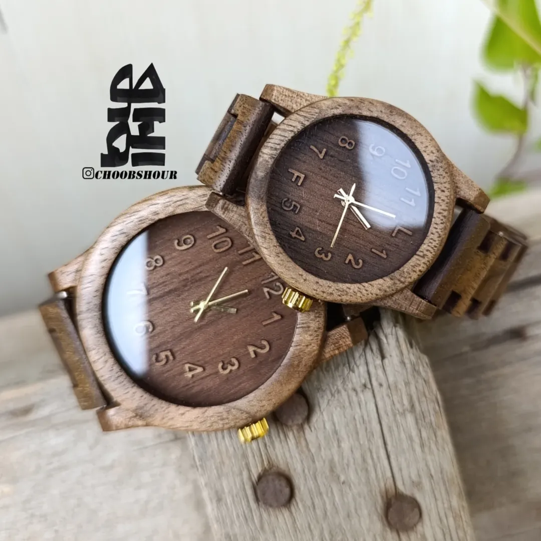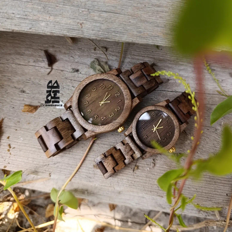ست ساعت چوبی با جزییات اختصاصی به سلیقه شما هپیه خاص شیک کمیاب مناسب تمام سنین با کاربری جذاب و راحت. سایز بندی صفحه: زنانه ۳ ۳/۵ سانت مردانه ۴/۲ ۴/۵ سانت.