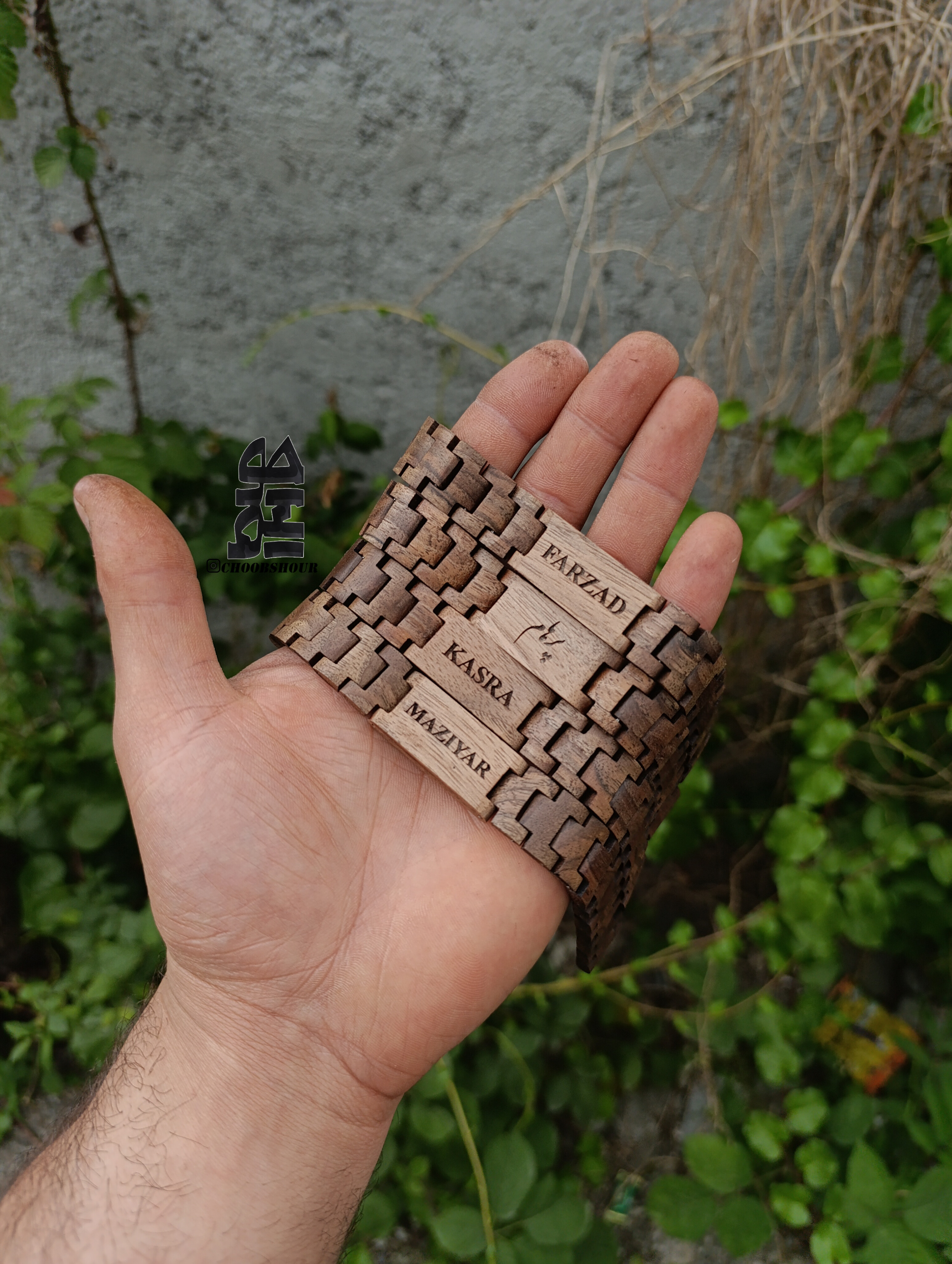 دستبند چوبی با درج حک هر متنی ساخته شده از چوبی طبیعی جنگلی گردو مناسب تمامی سنین برای مناسبت های شما