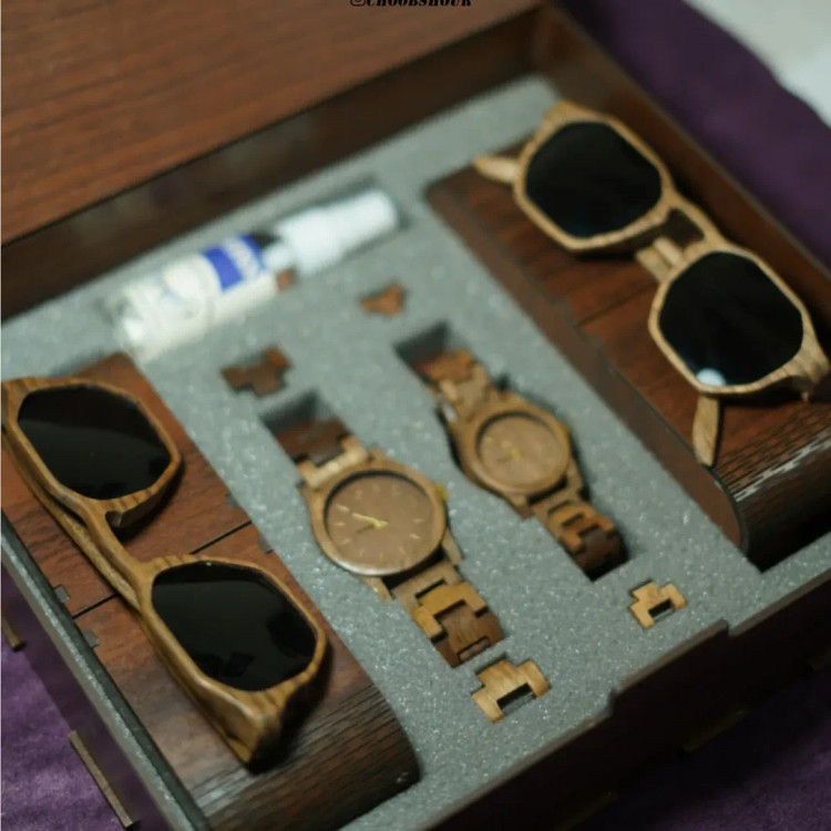 ساعت مچی و عینک ساخته شده از چوب طبیعی