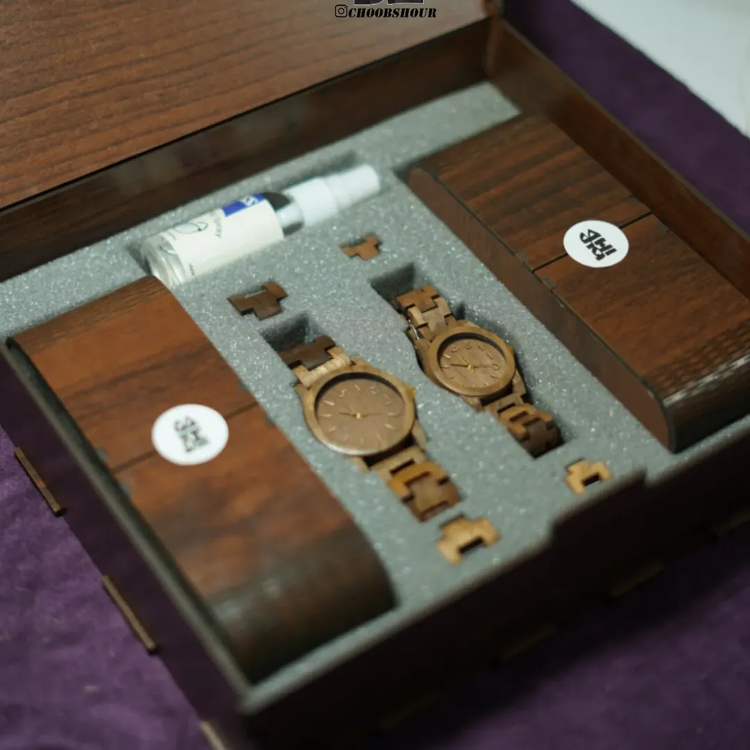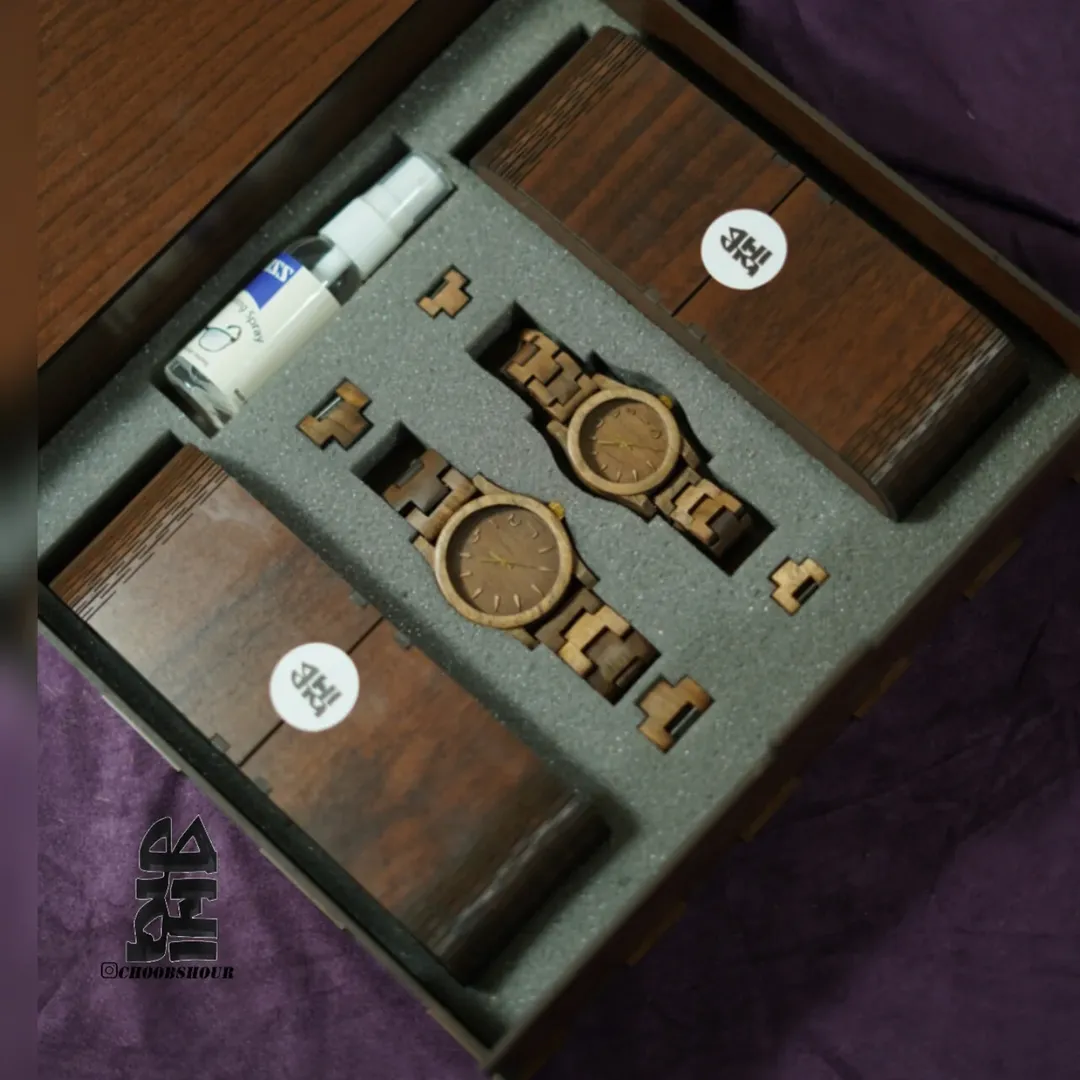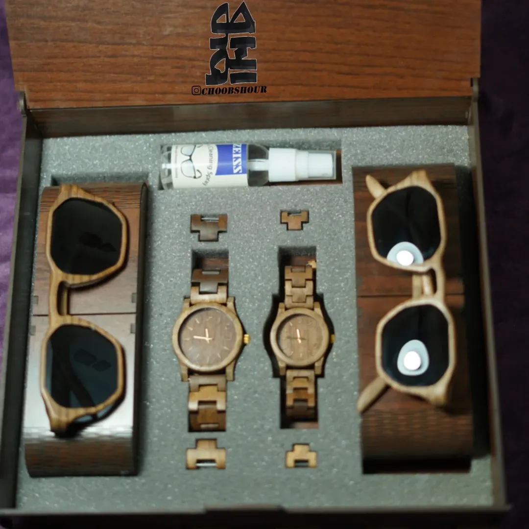 ساعت مچی و عینک ساخته شده از چوب طبیعی